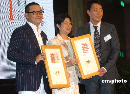 | 香港著名作曲家雷頌德(左)、公益金董事、演藝明星黎明先生9月1日晚接受香港公益金會會長曾鮑笑薇女士頒發(fā)公益金榮譽獎。當(dāng)晚,香港公益金2005/2006年度周年頒獎典禮在香港會展中心隆重舉行。據(jù)介紹,該年度共籌款二億二千五百萬港元,創(chuàng)下1998年來最優(yōu)秀的成績。中新社發(fā) 王麗南 攝