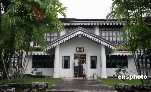圖為普吉城鎮(zhèn)里的“Chinpracha House”,是一位祖籍福建的第二代華人于一九0三年建造的,現(xiàn)仍居住著其后裔。中新社發(fā) 羅欽文 攝