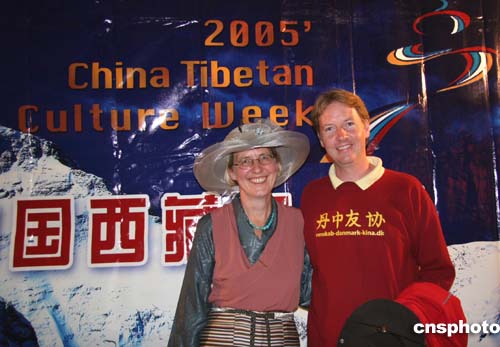 丹中友協(xié)主席布林克女士在“中國西藏文化周”開幕當(dāng)天,身著藏式服裝主持招待活動(dòng)。
