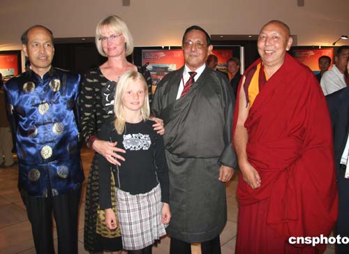 丹麥文化部常秘卡洛琳娜 卡耶爾森女士(左二)攜帶愛女與中國西藏文化周訪丹代表團(tuán)團(tuán)長布窮(左三)、中國駐法大使甄建國(左一)、代表團(tuán)成員宗洛 向巴克珠活佛(左四)等一起合影。