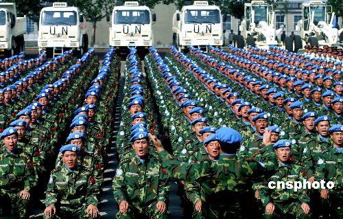 | 9月8日上午,中國(guó)赴蘇丹維和部隊(duì)成立大會(huì)在山東萊陽(yáng)舉行。濟(jì)南軍區(qū)司令員范長(zhǎng)龍、政委劉冬冬,以及總部機(jī)關(guān)的領(lǐng)導(dǎo)同志出席了成立大會(huì)。應(yīng)聯(lián)合國(guó)要求,經(jīng)國(guó)務(wù)院、中央軍委批準(zhǔn),全部由濟(jì)南軍區(qū)組建的這支維和部隊(duì)共435人,包括一支275人的工兵分隊(duì)、一支100人的運(yùn)輸分隊(duì)和一支60人的醫(yī)療分隊(duì),主要擔(dān)負(fù)聯(lián)合國(guó)劃定的蘇丹第二戰(zhàn)區(qū)內(nèi)的修筑道橋、機(jī)場(chǎng),修建供水、供電設(shè)施,運(yùn)輸人員、物資,組織傷病員救治和衛(wèi)生防疫等任務(wù)。10月份,這支部隊(duì)的先遣隊(duì)165人將飛往非洲國(guó)家蘇丹執(zhí)行維和任務(wù)。 作者:施文標(biāo)