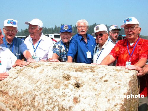 | 九月十日,到中國(guó)參加紀(jì)念抗戰(zhàn)勝利六十周年活動(dòng)的二戰(zhàn)美國(guó)老兵重回故地,參觀(guān)了當(dāng)年奮戰(zhàn)過(guò)的地方。六十多年,以陳納德將軍為首的美國(guó)“飛虎隊(duì)”即中國(guó)空軍美國(guó)志愿援華航空隊(duì)在中國(guó)英勇抗擊日本侵略軍。位于今日昆明市郊的呈貢機(jī)場(chǎng),是當(dāng)時(shí)“飛虎隊(duì)”主要的空軍基地之一,機(jī)場(chǎng)南北長(zhǎng)三千米,東西寬一千米,當(dāng)年因?yàn)闆](méi)有壓路機(jī),中國(guó)民工只能用石碾子壓制飛機(jī)跑道,其中最大的石碾子高一點(diǎn)八米,重五噸。圖為幸存的“飛虎隊(duì)”老兵們手摸石碾子,追憶當(dāng)年的崢嶸歲月。 作者:王超