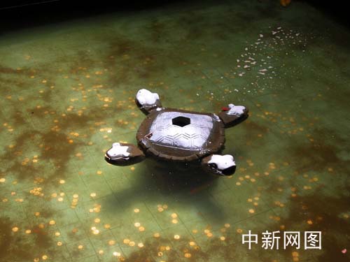 天井中的四方龜。陽光撒射在它身上,它靜靜地附在水中,也許耳邊聽了佛經(jīng)前遍,仍在思考著其中的奧秘。