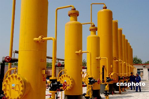 | 中國(guó)石化集團(tuán)公司已經(jīng)將天然氣產(chǎn)業(yè)作為重點(diǎn)產(chǎn)業(yè)加以發(fā)展,先后在新疆、四川、內(nèi)蒙古等地獲得了重大發(fā)現(xiàn),呈現(xiàn)出儲(chǔ)量、產(chǎn)量、同步增長(zhǎng)的良好勢(shì)頭。圖為2005年國(guó)慶節(jié)期間中原油田天然氣產(chǎn)銷(xiāo)廠文留4號(hào)集氣站職工對(duì)生產(chǎn)設(shè)備進(jìn)行巡檢。作者:胡慶明