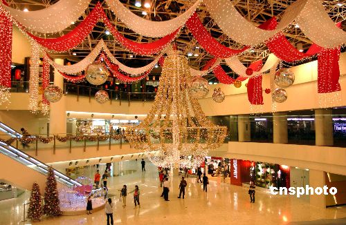 圣誕是傳統(tǒng)零售旺季,香港各大商場圣誕裝飾大都完工,圖為葵芳新都會(huì)廣場大堂布置成美侖美奐,富麗堂皇。 作者:譚達(dá)明