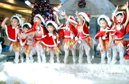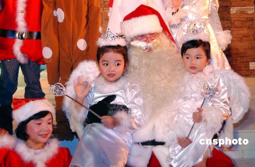 11月24日,香港旅游發(fā)展局在中環(huán)即將啟動(dòng)的“2005香港繽紛冬日節(jié)”上,推介圣誕節(jié)各種裝飾。小朋友和圣誕老人為現(xiàn)場帶來歡樂。作者:洪少葵