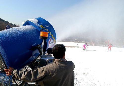 | 12月7日,山西長治市老頂山國家森林公園神農(nóng)滑雪場上,造雪機噴出晶瑩的雪花,使滑雪場迎來今冬“第一場雪”。連日來,持續(xù)的嚴(yán)寒使滑雪場具備了人工造雪的條件。目前,長500米、寬100米的滑雪道已達到滑雪標(biāo)準(zhǔn)。這一富有特色的冬季戶外活動,不僅滿足了滑雪愛好者的需求,而且促進了當(dāng)?shù)囟咎厣糜蔚陌l(fā)展。 作者:姚林