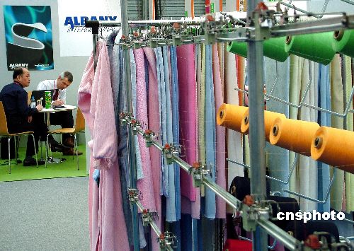 | 12月21日,據(jù)國(guó)家紡織品進(jìn)出口商會(huì)透露:土耳其2006年將對(duì)中國(guó)44類紡織品實(shí)施配額限制措施。土耳其外貿(mào)署近日發(fā)布官方公報(bào)稱,2006年在對(duì)中國(guó)設(shè)限的42類紡織品的基礎(chǔ)上增加了第40類(毛料、棉料、合成或人造纖維制成的簾布)和第67類(編織類的其他服裝飾物、各類家居飾物、簾布、床罩等)。圖為在上海舉行的一次中國(guó)紡織品展會(huì)。作者:井韋