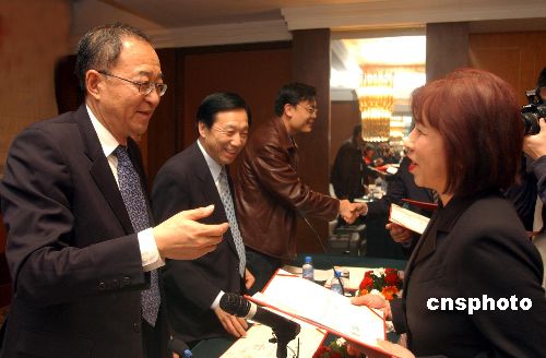 | 一月十三日,中國國務(wù)院僑辦副主任劉澤彭為首屆海外華文媒體高級研修班媒體的負(fù)責(zé)人頒發(fā)結(jié)業(yè)證書。由國務(wù)院僑辦文宣司和中國新聞社聯(lián)合舉辦的“2006海外華文媒體高級研修班”結(jié)業(yè)儀式在北京落幕。來自海外華文媒體的負(fù)責(zé)人在研修班進行新聞理論和新聞業(yè)務(wù)等方面的課程培訓(xùn)。作者:韓藝冰
