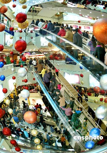 | 2006年1月23日,萬事達(dá)卡國際組織日前公布了最新的萬事達(dá)卡消費(fèi)者信心指數(shù):超過八成的中國消費(fèi)者保持著強(qiáng)烈的樂觀感,對國內(nèi)的生活質(zhì)量、經(jīng)濟(jì)和固定收入的信心指數(shù)分別為93.8、92.6和92.4,這些指標(biāo)都持續(xù)創(chuàng)新高。圖為春節(jié)臨近商場電梯上顧客擁擠一景。作者:張和平