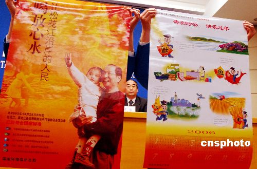 | 一月二十四日,新任國家環(huán)?偩志珠L周生賢在國務院舉行的新聞發(fā)布會上,向大家介紹兩幅宣傳年畫,第一張是讓松花江沿岸人民喝上放心水,第二張叫“告別污染,快樂過年”。他介紹,松花江、黑龍江監(jiān)測斷面水中硝基苯的濃度已經(jīng)符合國家標準。專家認為今春解凍期松花江大面積水質(zhì)不會超標,各江段及沿岸魚塘的魚可以放心地食用;沿江兩岸地下水也已符合國家標準,可以安全飲用;用松花江水進行灌溉不會影響農(nóng)作物的生長。春節(jié)來臨之際,兩幅帶著美好祝愿的年畫已經(jīng)送到了松花江沿線。作者:王麗南