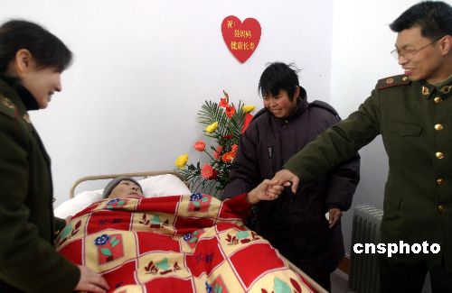 | 1月23日,航天英雄聶海勝的媽媽回家了,她與護(hù)送她回家的醫(yī)生拉手告別。當(dāng)天中午,兩輛軍車駛向湖北棗陽(yáng)市楊垱鎮(zhèn)航天英雄聶海勝家,廣州軍區(qū)武漢總醫(yī)院的醫(yī)護(hù)人員將聶媽媽送回家。當(dāng)看到離別3個(gè)月的家時(shí),老人臉上露出了久違的笑容。聶海勝的四姐、五姐早已在娘家等著了。廣州軍區(qū)武漢總醫(yī)院宣傳科長(zhǎng)邢秋華對(duì)記者說:“1月19日,醫(yī)院院長(zhǎng)宋蘭堂、政委周正友專程到北京航天員訓(xùn)練中心,當(dāng)面向聶海勝介紹了聶媽媽張金秀的健康狀況。聶海勝很感激,也很欣慰,贊同母親回家!苯(jīng)過幾個(gè)月康復(fù)治療,聶媽媽身體明顯好轉(zhuǎn),她不僅能說“餓”、“吃”等單音詞,還能做“OK”,“1、2、3、4”等簡(jiǎn)單的手勢(shì)。 作者:張治平