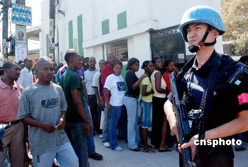 圖:海地大選中國防暴隊作好警衛(wèi)準(zhǔn)備