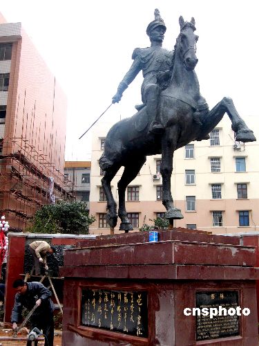 | 二月十日,湖南省首個(gè)以詮釋辛亥革命歷史背景的長沙“共和廣場”正在進(jìn)行最后的修繕工作!肮埠蛷V場”以橢圓形門拱作為設(shè)計(jì)主題,蔡鍔銅像、“斗士”雕塑、“博愛”雕塑和樹林矩陣,來詮釋辛亥革命歷史意義,以及人們對(duì)“共和”的向往。大型雕塑《蔡鍔》以辛亥革命為歷史背景,表現(xiàn)了蔡鍔騎著戰(zhàn)馬正準(zhǔn)備出發(fā)的情景,高五點(diǎn)八米,其中銅像凈高為三點(diǎn)八米,基座二米,凈重二噸。作者:劉雙雙