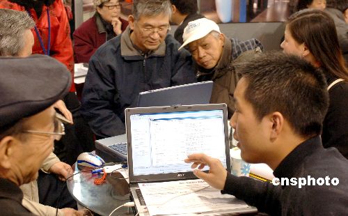 | 二月二十三日,數(shù)以千計(jì)的北京退休老人,親自出馬,聚集在北京展覽館,在當(dāng)日開幕的“第七屆美化家居展覽會(huì)”上,以節(jié)約開支為目標(biāo),千方百計(jì)地拜訪多家裝飾公司,尋求裝修自己新居的最佳良策。圖為這些老人們?cè)谝患已b飾公司展臺(tái),查詢裝修房屋報(bào)價(jià)細(xì)則。 作者:鄒憲