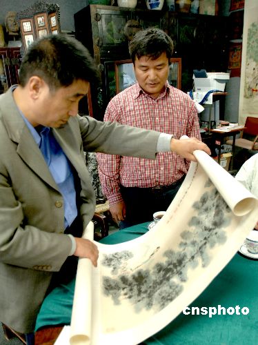 | 正在美國(guó)訪問的中國(guó)國(guó)家文物鑒定委員會(huì)委員張文康教授和云南省瓷器鑒定專家王昆先生,二月二十五日在洛杉磯東方之珠古董店義務(wù)為華人華僑們鑒定家中收藏的中國(guó)書畫,鼓勵(lì)弘揚(yáng)中華文化。作者:賈國(guó)榮