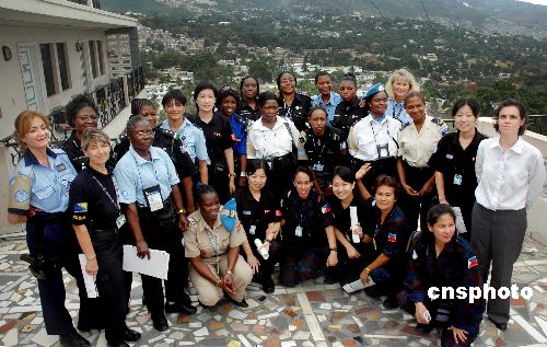 | 3月7日,世界各國在海地太子港工作的維和女警召開婦女權(quán)益研討會,以慶祝三八婦女節(jié)。會議討論了女性在維和任務(wù)區(qū)面臨的挑戰(zhàn)、應(yīng)當(dāng)怎樣為海地婦女提供更多的幫助等四個方面的問題。有15個國家的38名女維和警察參加了座談會,中國防暴隊的4名女警代表參加了座談。 作者:維和