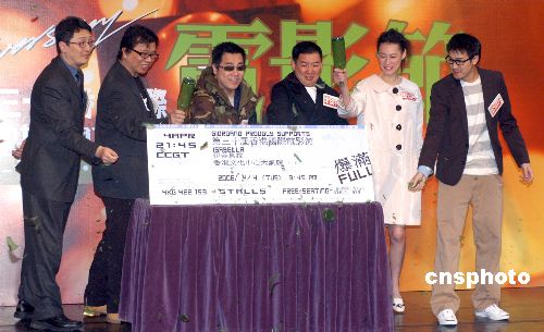 | 3月15日,“第三十屆香港國際電影節(jié)”開幕電影《伊莎貝拉》舉行記者會(huì),“《伊莎貝拉》在柏林電影節(jié)勇奪最佳音樂銀熊獎(jiǎng),該片演員梁洛施、曾國祥、演員兼監(jiān)制杜汶澤及導(dǎo)演彭浩翔(左三)、音樂總監(jiān)金培達(dá)(左二)在會(huì)上以影片中經(jīng)常出現(xiàn)的晝面---爆樽,慶祝該片網(wǎng)上預(yù)售爆滿。作者:鄧慶樂