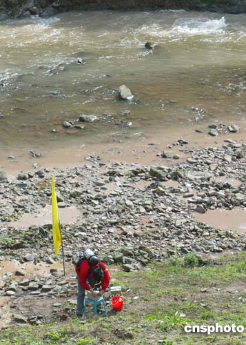 | 三月二十六日,一名技術人員正在開縣井漏現(xiàn)場附近一條河流進行檢測。三月二十五日,位于重慶市開縣高橋鎮(zhèn)的羅家二井發(fā)生天然氣泄漏,搶險人員對井口進行了點火泄壓,羅家二井與與曾發(fā)生“一二·二三”特大井噴事故的羅家十六號井同井場。事故發(fā)生后,當?shù)卣褜⑹鹿示畧龈浇蝗f余名民眾疏散至安全地帶,目前并未有人員傷亡。作者:郭晉嘉