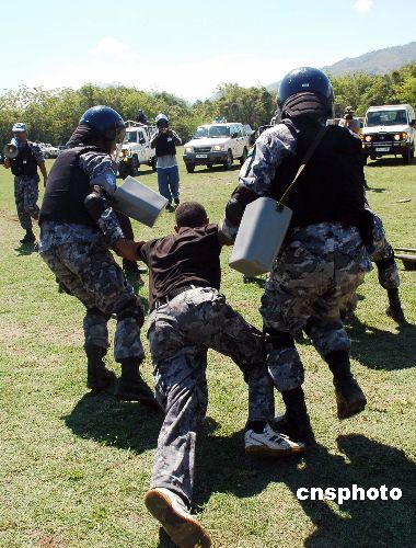 | 4月6日,聯(lián)合國海地穩(wěn)定團(聯(lián)海團)進行了防暴演習,在海地維和的6個國家的7支維和警察防暴隊和海地國家特警參加了實戰(zhàn)演習。 在這次演習中,模擬了中國防暴隊保衛(wèi)的計票中心遭到游行示威的海地各黨派支持者沖擊計票中心時,各個國家防暴隊按照統(tǒng)一部署,快速處置沖擊計票中心的事件和太子港可能出現(xiàn)的騷亂事件。當天中國維和警察防暴隊演練的科目是“計票中心遭到圍攻后的保衛(wèi)和反擊”戰(zhàn)術(shù),隨著指揮員的一聲令下,中國防暴隊員駕駛車輛迅速趕到演習地點,擺開戰(zhàn)斗隊形,防暴隊以迅速的站位、規(guī)范的動作和良好的精神風貌贏得了全場的掌聲。作者:陳進