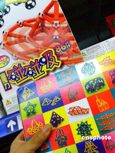 | 一款在中國(guó)與美國(guó)均有出售的磁性積木玩具,成為兒童的奪命陷阱。推出該玩具的加拿大玩具商MegaBlok日前下令召回380萬(wàn)份從中國(guó)進(jìn)口的玩具,Magnetix磁性積木是益智類玩具,2003年9月上市后風(fēng)靡全美。據(jù)悉,該玩具在美國(guó)共發(fā)生34宗意外。據(jù)了解,上海一些兒童玩具銷售場(chǎng)所,發(fā)現(xiàn)都有類似的磁石拼裝玩具銷售。作者:井韋