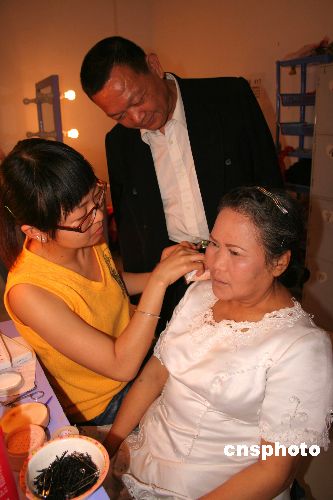 | 4月25日,重慶市榮昌縣廣順鎮(zhèn)居民楊道才、賀學(xué)炳夫婦在縣城照相館準(zhǔn)備拍攝結(jié)婚37年紀(jì)念照。隨著農(nóng)民生活條件的提高,不少農(nóng)民紛紛補(bǔ)照以前沒有照到的婚紗照,以留下生命中的美好瞬間。近日來,當(dāng)?shù)夭簧俎r(nóng)民到照相館補(bǔ)照婚沙照,成為了當(dāng)?shù)鼐用裆畹囊痪啊W髡撸褐焓|鋒