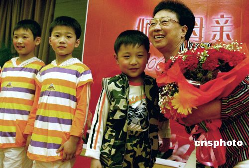 | 五月十三日,河北唐山孤兒村村長、孤兒們最敬愛的常玉珍媽媽,在中國婦女活動中心舉辦的“傾聽母親,感恩祖國”主題聯(lián)誼活動中,接受孤兒村孩子們的鮮花祝福。當日,全國婦聯(lián)、北京市婦聯(lián)等單位在北京聯(lián)合主辦了此次聯(lián)誼活動,來自各行各業(yè)的優(yōu)秀母親出席了聯(lián)誼會。作者:張勤