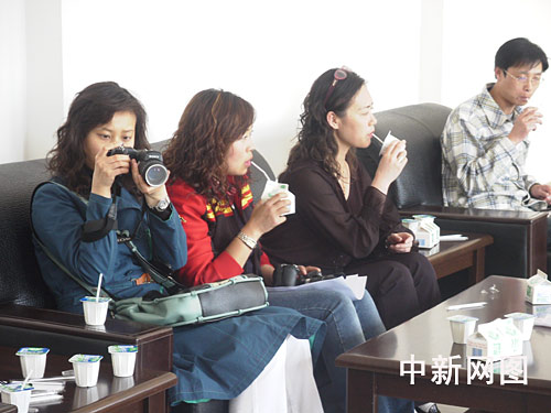 在位于德力戈爾民族經濟開發(fā)區(qū)的大慶妙士乳業(yè)公司,網絡媒體的記者們品嘗剛剛下線的優(yōu)質乳品。