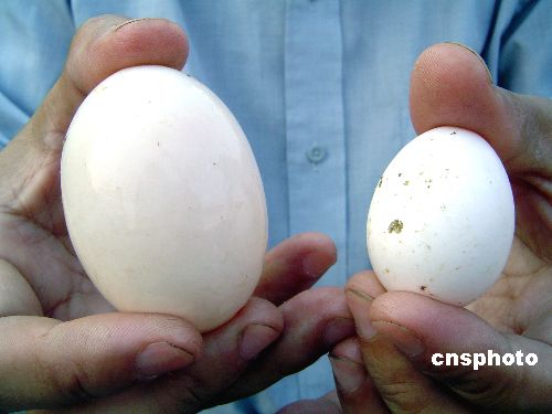 | 5月16日,重慶市云陽縣一信鴿愛好者喂養(yǎng)的一羽代號為“CHN2005.31.007541”的信鴿產(chǎn)下一枚“巨無霸”鴿蛋,重達(dá)75克,是普通信鴿蛋的5倍左右。據(jù)鴿主人介紹,這羽信鴿已產(chǎn)蛋8個(gè)多月,平時(shí)產(chǎn)的蛋沒有什么特別之處。產(chǎn)下這枚巨蛋后,信鴿的尾部被蛋撐傷,目前還在用藥療傷。作者:周斌