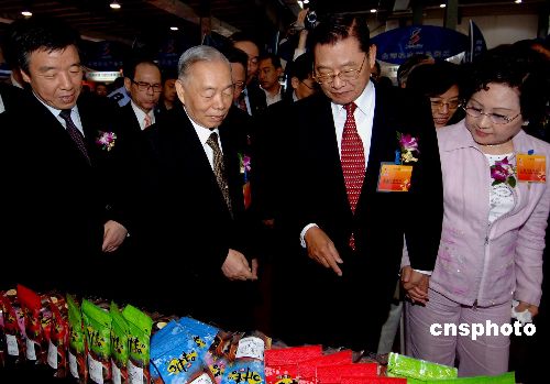 張克輝、江丙坤福州觀看臺灣農(nóng)產(chǎn)品展示