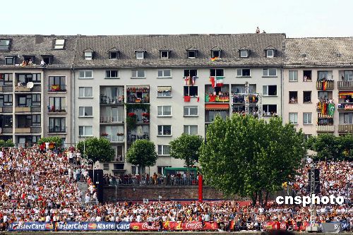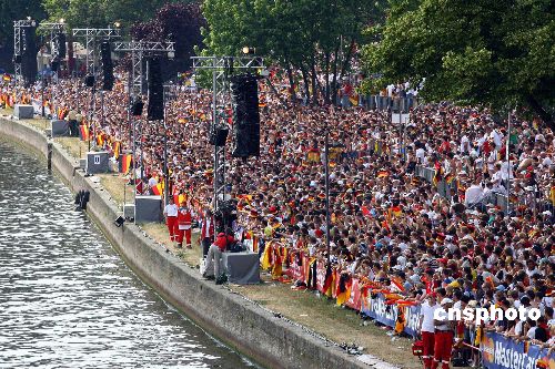 圖:法蘭克福數(shù)萬球迷觀看世界杯現(xiàn)場直播