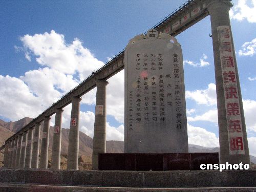 從昆侖山北緣的納赤臺(tái)上行15公里,一座雄偉的大橋拔地而起,像巨人的雙臂托起飛馳而來(lái)的列車(chē)。這座大橋就是青藏鐵路沿線最高的大橋——三岔河大橋。中新社發(fā) 吳芒子 攝