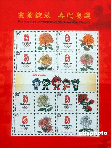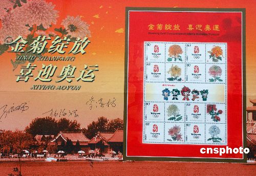 圖:《金菊綻放迎奧運(yùn)》個性化郵票發(fā)行