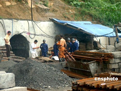 | 6月30日,貴州桐梓縣松坎鎮(zhèn)巖野村松瑩煤礦501風(fēng)巷發(fā)生瓦斯爆炸,造成井下礦工8人遇難身亡,2人受傷。據(jù)了解,桐梓縣松坎鎮(zhèn)松瑩煤礦是一家年生產(chǎn)設(shè)計能力為15萬噸的在建高瓦斯新礦。事發(fā)后,救援車輛和救援人員已都投入緊張搶救工作中。當?shù)卣惭杆俳M織成立了醫(yī)療專家組,搶險救援組,通訊報道組,善后工作組和事故聯(lián)合調(diào)查組,并由專人負責(zé)安撫傷亡人員家屬。同時,省市縣三級相關(guān)部門的負責(zé)人也先后趕到現(xiàn)場,組織指揮搶險。經(jīng)過20多個小時的努力,截止第二天下午3時40分,8名遇難死者的尸體被分別抬出礦井。目前,兩名傷者已脫離生命危險。事故原因正在作進一步調(diào)查。 中新社發(fā) 張紹明 攝