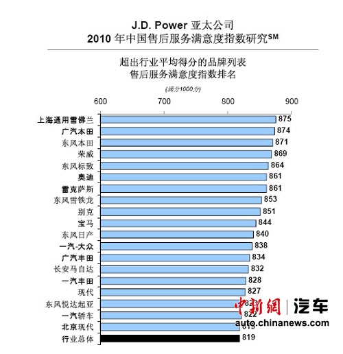 2010年中國售后服務(wù)滿意度指數(shù)研究的主要評(píng)價(jià)因子包括服務(wù)質(zhì)量、服務(wù)后交車、服務(wù)啟動(dòng)、服務(wù)顧問以及服務(wù)設(shè)施等五項(xiàng)因子,以測(cè)評(píng)車主在購車的12至24個(gè)月期間,對(duì)品牌售后服務(wù)部門所提供保養(yǎng)和維修服務(wù)的滿意度進(jìn)行評(píng)價(jià)。在此次研究中,廣汽本田以874分的總分(總分1000分)榮獲第二,僅以一分之差與冠軍失之交臂,但同比2009年結(jié)果(870分),分?jǐn)?shù)有進(jìn)一步的提升。