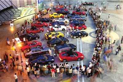 “我長這么大,還從來沒有一次看到這么多名貴的豪車!4日下午,市民許小姐經(jīng)過重慶江北觀音橋步行街遠東百貨門前發(fā)現(xiàn):23臺總價接近億元的法拉利、瑪莎拉蒂豪華跑車發(fā)動機低鳴,依次停放在百貨商場門前廣場。
