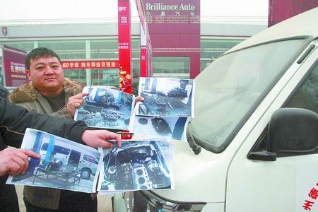 上午10時(shí),記者趕到豐慶路與北環(huán)路交叉口,看到一輛上牌的金杯海獅商務(wù)車橫在華晨汽車銷售店門前,車旁的幾名男子出示了一沓發(fā)動(dòng)機(jī)被拆開維修時(shí)的照片,該車?yán)锍瘫頂?shù)據(jù)為12692公里。