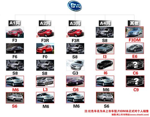 從上面的比亞迪詳細新車規(guī)劃中可以看出,比亞迪未來不僅有A1、A2、A3銷售網(wǎng)絡,還將有A4網(wǎng)絡,而新能源車放在哪個網(wǎng)絡暫時還不得而知。在四張網(wǎng)絡下,將推出M6、L3、I6、I3、E6、S6、G6、C6、C9等全新車型,而F3DM雖然已經(jīng)公布售價,但還未對個人銷售,因此也算在比亞迪的規(guī)劃新車中。這其中M6、G6、S6預計將在明年上市,分別為MPV、B級轎車、SUV車型。