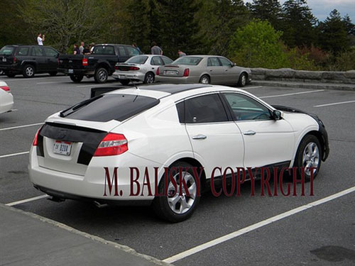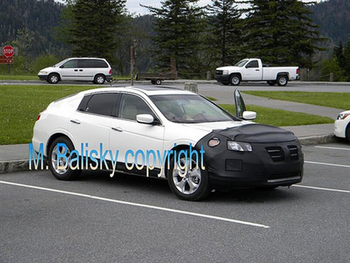 從諜照上看,雅閣Crosstour的車頂線條與在本屆紐約車展上亮相的謳歌ZDX概念車非常相似,車頂擺脫了傳統(tǒng)的“兩柱式”設計,A柱與C柱被視覺沖擊感極重的一體式“溜背”車頂設計所取代。雖然此設計創(chuàng)新力極佳,但是后尾急降的弧度不知道會不會另后排乘客感覺到頭部空間不夠。