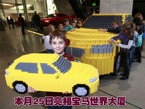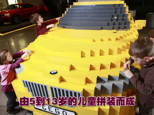 這款寶馬X1是由這些孩子在四天的時間內(nèi)用樂高板塊拼裝而成的,主要采用的為黃色的樂高板塊。所拼裝完成的X1車型長為4.5米,寬為1.8米,高為1.5米。