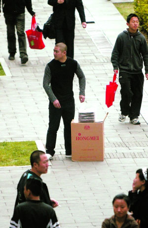 記者26日下午在這里看到,一個(gè)男人坐在通道里,手拿計(jì)算器,1個(gè)多小時(shí)內(nèi)陸續(xù)有近30人出入,大家把錢交到男子手中,隨后分批離開。一個(gè)操著東北口音的男子說:“我是來幫忙賣盒飯的,中間拿提成!