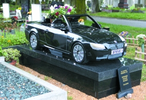 英國車迷史蒂夫·馬什去年去世。為表現(xiàn)他生前對汽車的熱愛,馬什的家人為他訂做一個“寶馬”車造型的墓碑。