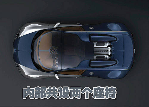 其車身外觀主要由碳纖維和鋁金屬構成,其中碳纖維采用的藍色噴涂顏色,而其鋁金屬則是其本身的顏色,不過經過了拋光處理。較大的輪轂采用的為午夜藍色以及金剛石刻磨的雙色調裝飾。車廂內部采用了優(yōu)質的Grand Sport真皮裝飾,營造了內部典雅和諧的格調。