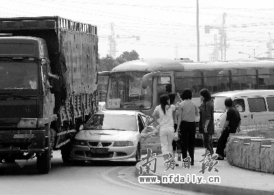 首先要說的自然就是小車追尾大貨車的事故,這是最典型的中國特色高速公路事故,而小車車上人員的傷亡率在這樣的事故當中高得驚人。路上跑著的大貨車,多半性能低下,典型的老牛拉破車,遇到點坡度,只能掛著一擋慢慢晃。加上大卡車的超載常態(tài)化,與性能日益進步的私家車相比,卡車與小車的速度落差懸殊,對小車的安全造成了極大的威脅。另外大卡車司機中缺乏職業(yè)操守和道路安全常識的并不在少數,隨意霸占小車道行駛或是?柯愤呅捃嚦蔀榧页1泔垺\囄卜雷o欄的缺失,大卡車成了大禍車,遠高于小轎車車頭高度的卡車車尾,就如同一個個血盆大口,我們該如何躲避它們的威脅?