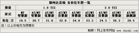 上海大眾斯柯達推出的全新B級車Superb昊銳,將于8月18日上市宣布價格。目前首批展車已經(jīng)運抵北京部分斯柯達4S店,近期部分經(jīng)銷商還將舉辦小規(guī)模的試駕賞車活動。與此同時記者也以消費者的身份詢問了北京地區(qū)多家斯柯達授權(quán)經(jīng)銷商,通過詢問我們得知了斯柯達昊銳的預(yù)售價格區(qū)間為19.5-28.5萬元,共分為9款車型: