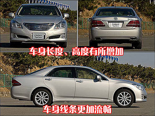 豐田新皇冠由于車身尺寸的增加,使得看上去更加大氣。另外新皇冠車身線條較老款看上去更加流暢,前臉開口部左右分開,使第13代皇冠車型更加成熟、穩(wěn)重!俺俗孢m”一直是皇冠車型的優(yōu)勢,而豐田新皇冠在保持舒適性的同時還增加了車輛的運動性能。這款車的前臉設(shè)計更加精悍,尾部依然采用傳統(tǒng)的多邊形設(shè)計。