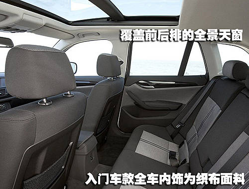 已經(jīng)出現(xiàn)在現(xiàn)款X3身上的全景大天窗同樣也會(huì)出現(xiàn)在BMW X1配置中,在同級(jí)別車型中并不多見的差尺寸天窗一定會(huì)受到不少潛在車主的喜愛。