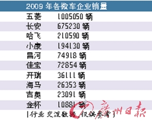 由于五菱和長安壟斷了目前微車市場五成以上的份額,其余的廠家至少近幾年內(nèi)只能是爭“老三”的份。2009年的統(tǒng)計數(shù)據(jù)顯示,剛并入長安汽車集團的哈飛微車銷量超過20萬輛左右,暫時位居第三,東風小康緊隨其后,兩者是微車第三最有力的爭奪者,不過,幾乎所有的廠家都聲稱要爭第三名。