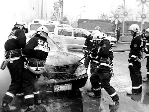 昨日下午3時40分許,一輛奔馳S600在北京豐臺區(qū)方莊環(huán)島西南角發(fā)生自燃,不斷冒出白煙。消防員趕到現(xiàn)場后將火撲滅,奔馳車車頭受損。(李毅哲 孫祥)