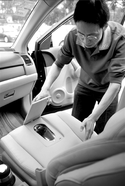 常聯(lián)營說,之前,他經(jīng)常聽到周圍的出租車司機朋友抱怨駕駛途中如廁難,時間長了易患腎病,便萌生了發(fā)明車載馬桶的想法。他遇到廁所就進(jìn)去觀看,大量搜集國內(nèi)外相關(guān)信息以后,一個農(nóng)貿(mào)市場內(nèi)的兒童坐便器讓常先生開了竅,想到將馬桶裝置與車座合而為一的辦法。這輛本田轎車的副駕駛座椅表面留有一個能活動的蓋子,開啟以后隱藏在車座內(nèi)的水槽便顯現(xiàn)出來。使用過后,系統(tǒng)自動沖水、凈化、排水。